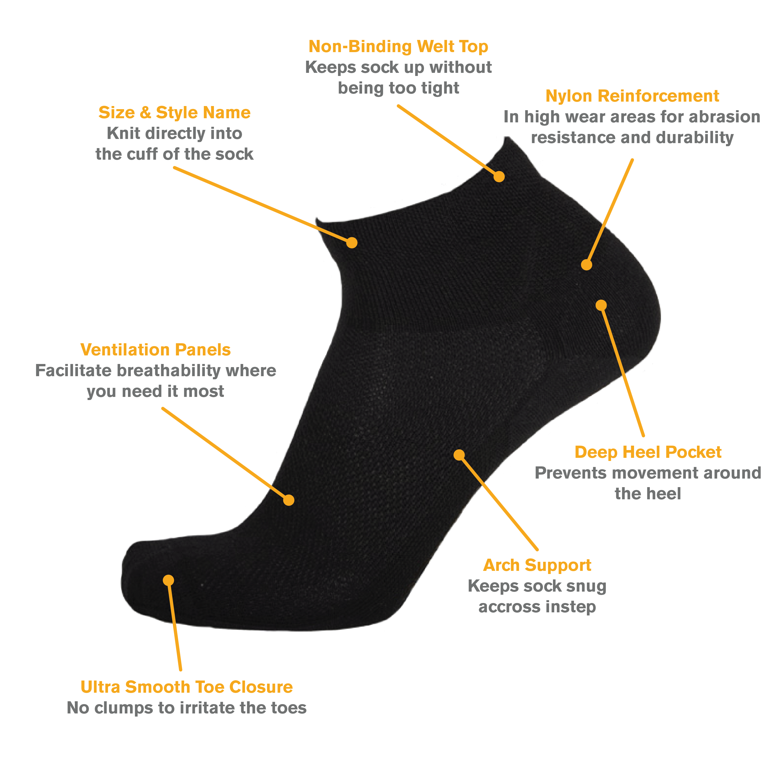 These mini-crew socks are comfortable, wicking, and fit perfectly. They don't sag or get bunched at the toe or under my heel. I've been buying Point6 socks almost exclusively for over 10 years and I can say that no other brand lasts longer.