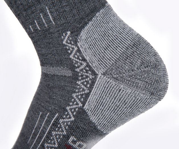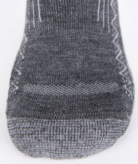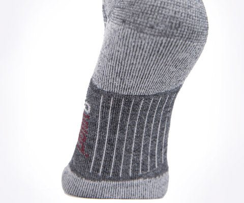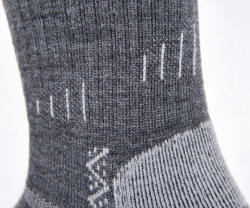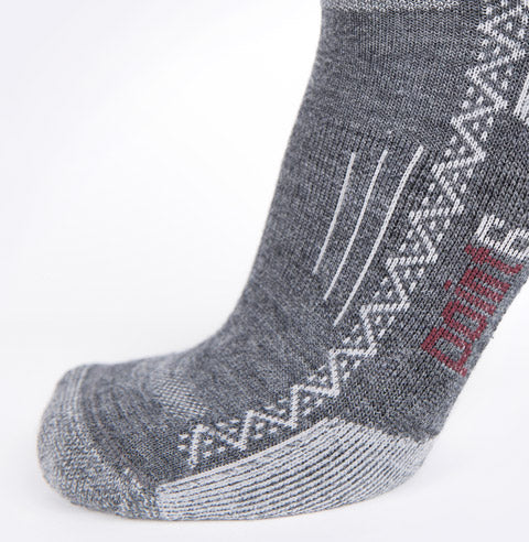 Point6 employs state of the art knitting techniques combined with compact spun merino wool yarns versus conventional ring spun yarns. Compact spinning greatly reduces loose fibers for more durable merino products without excessive wear or pilling. Heel and toe areas are reinforced with nylon for maximum durability with ventilation panels across the instep to improve breathability.