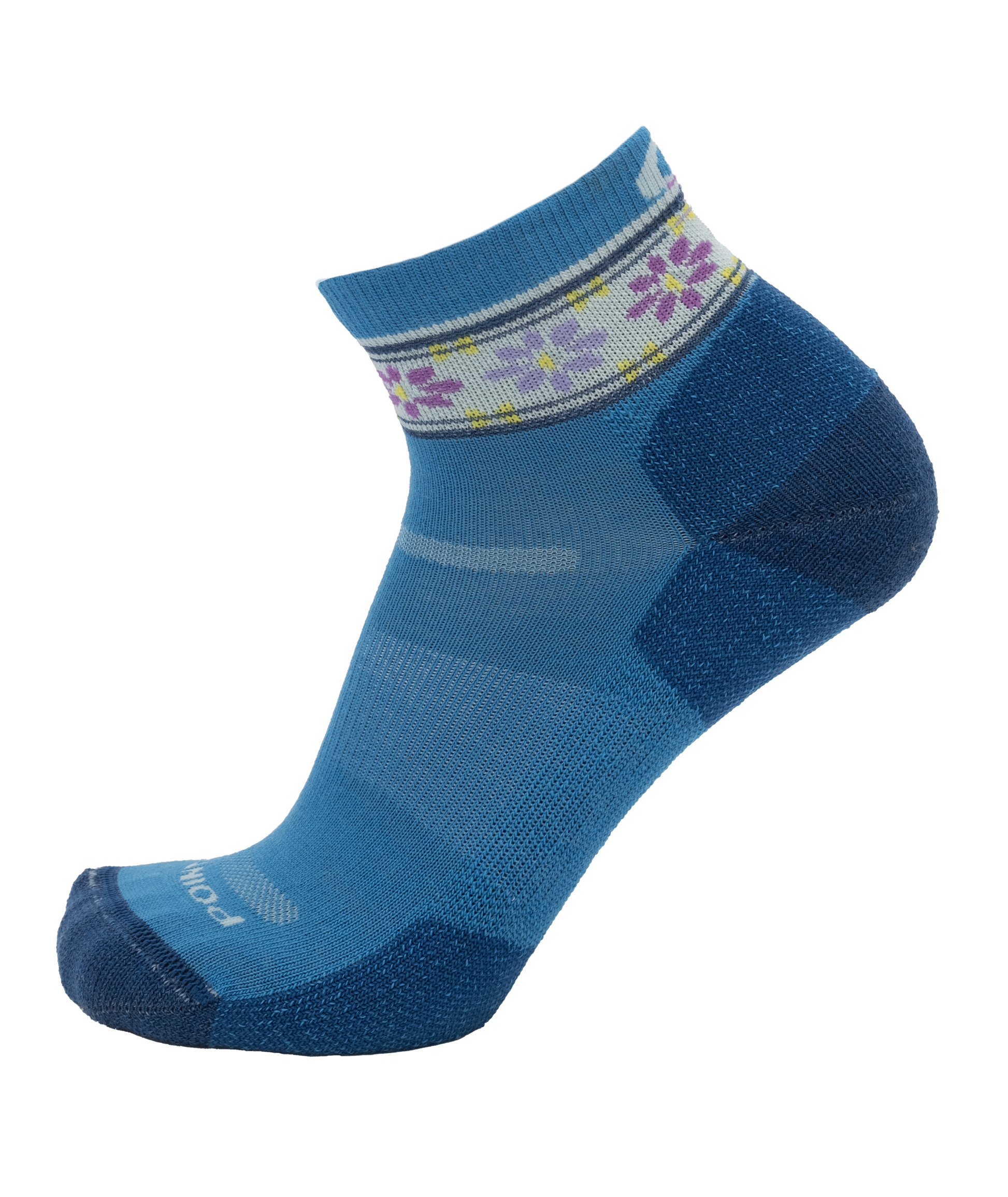 Life's too short for boring socks. The Cosmo Extra Light 1/4 Crew sports a distinctive floral cuff that adds just the right amount of personality without trying too hard.